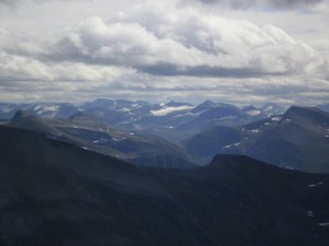 Zoomar søraustover mot Pyttegga, Illstigfjellet, Høgstolen, Trollkyrkja, Muldalsegga og Torsnosa. Seljebottinden mykje nærare og heilt til høgre.