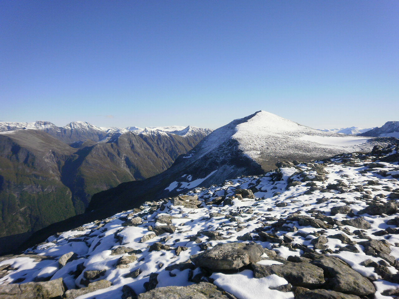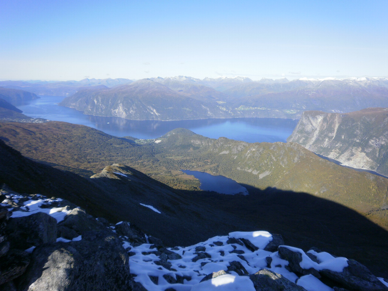 Bilde 1: Grøtet med gardane Smoge og Smogelia. Bilde 2: Zoomar mot søraust. Av fjella langt borte er Liafjellet det spisse litt til venstre, og Holtafjellet ligg litt til høgre. Bilde 3: Ser attende mot Fremste Blåhornet. Bilde 4: Utsyn mot Vassetvatnet med Lievarden til høgre og Skrenakken lengre til høgre.