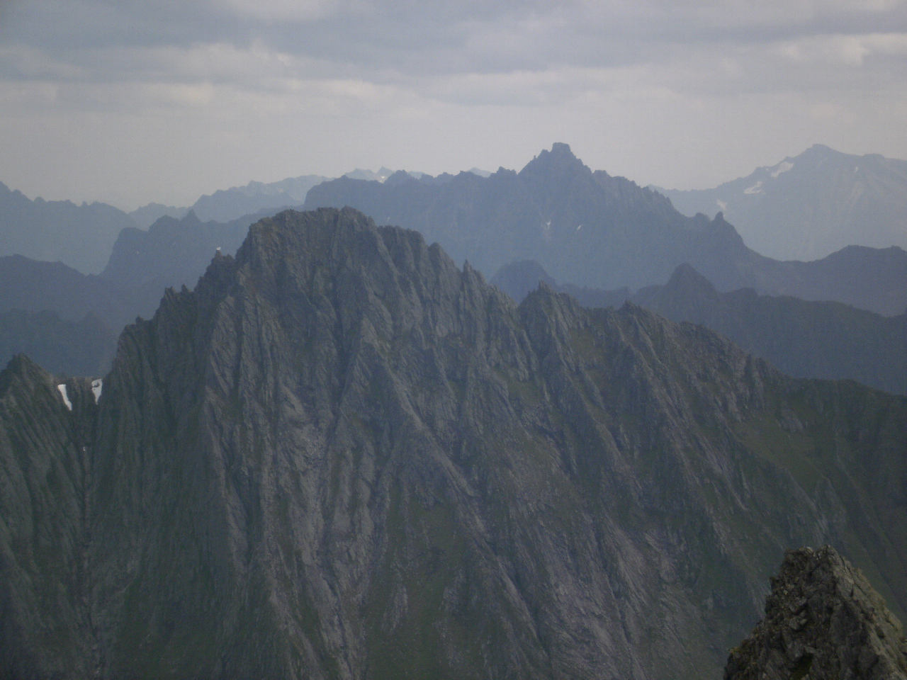 Zoombilde med Vassdalstinden, Kolåstinden og Råna (til høgre).