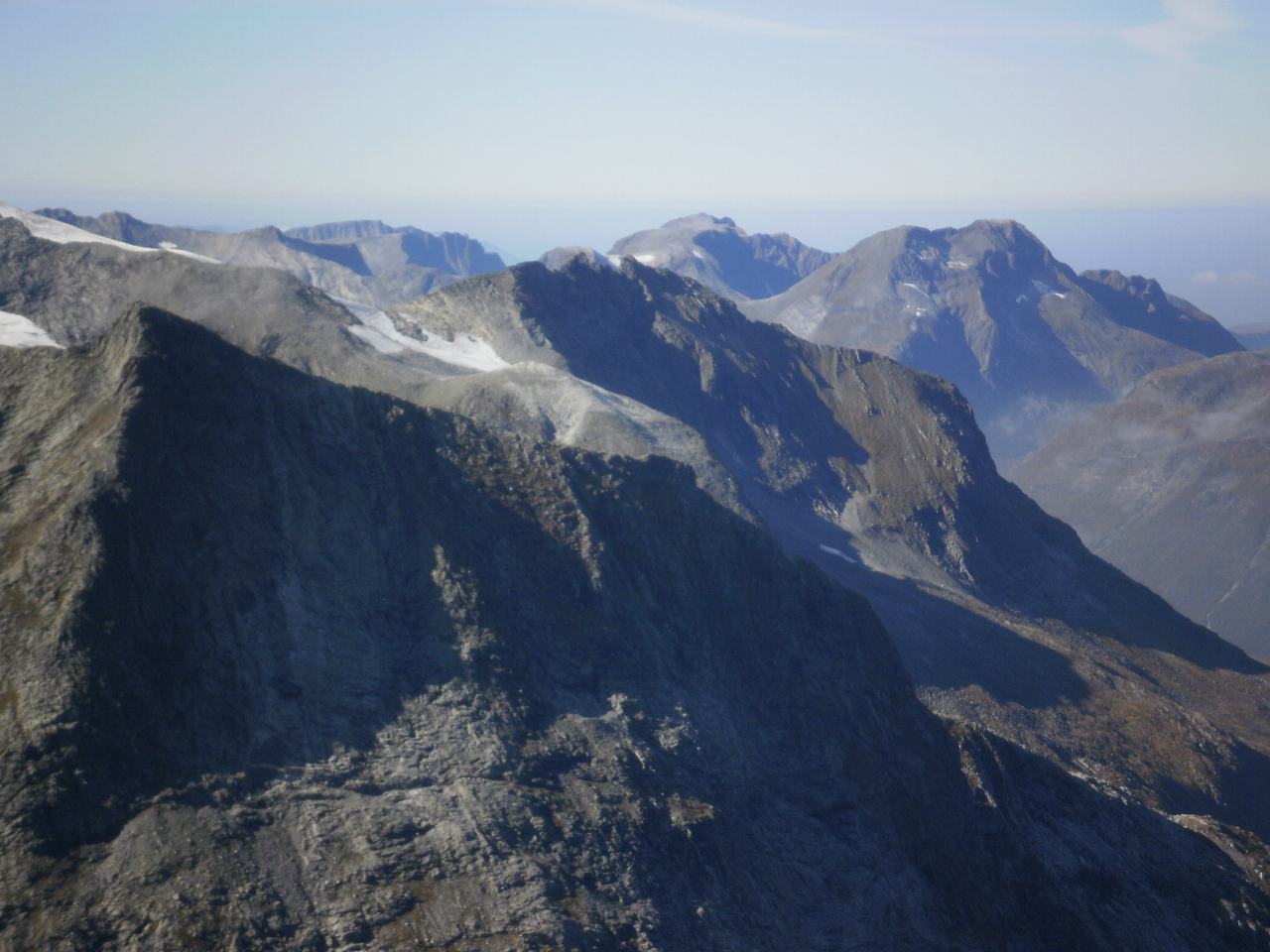 Zoomar vestover. Fjella i himmelsjå er Jolhornet til høgre og Storetinden nærare midten.