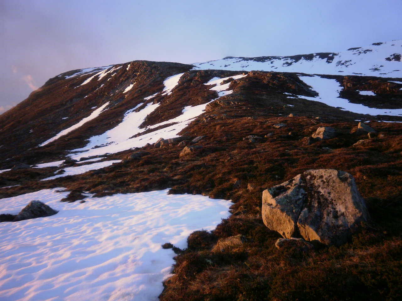 På reset i Kvanndalen. Vindstilt og fint å ta ein rast. Ser oppi Høgsvora. Toppen ligg sovidt til høgre for midtlina i bildet.