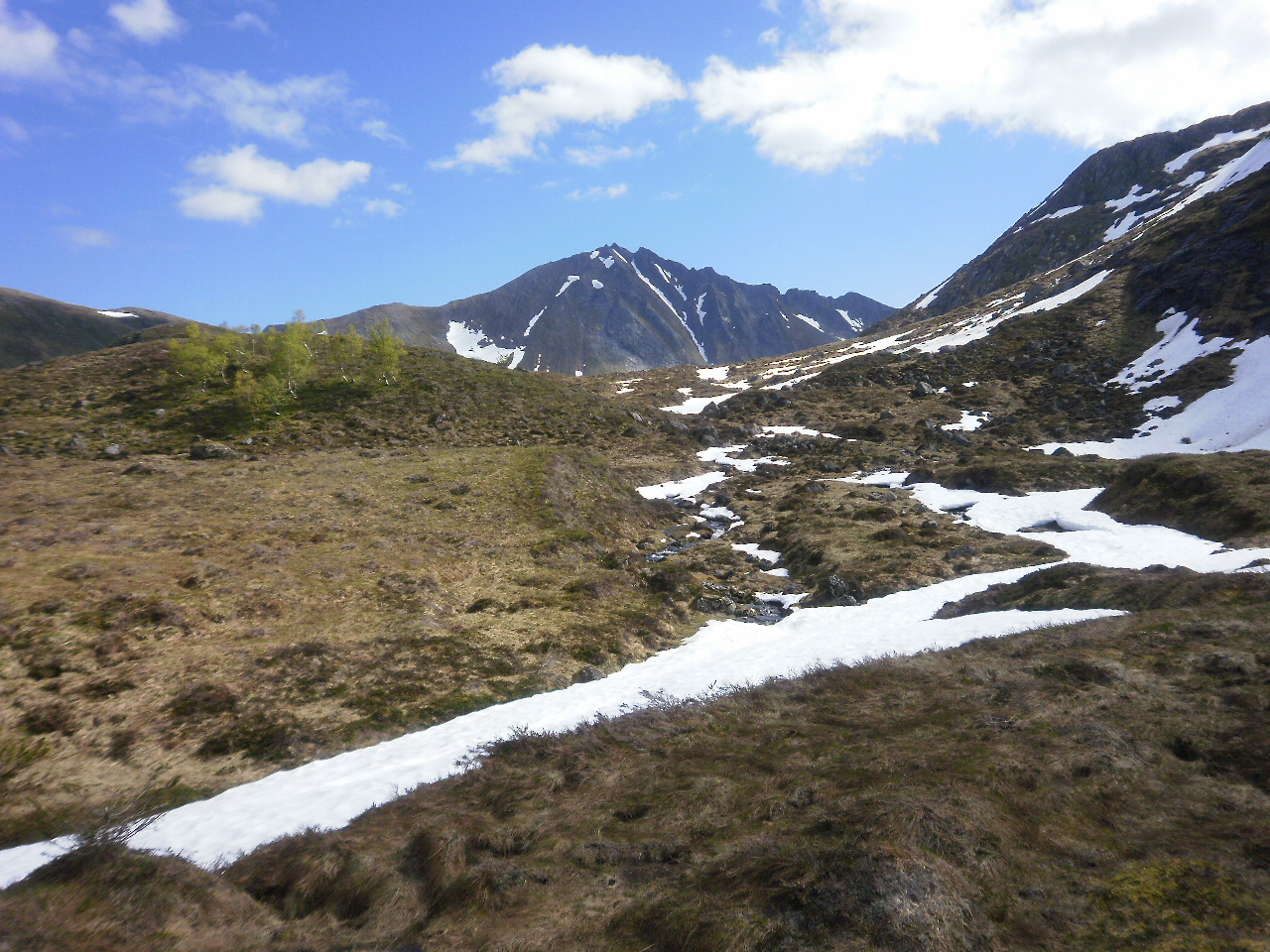 Nedunder Storekuen. Fjellet i bakgrunnen er Romedalssida av Middagshornet.