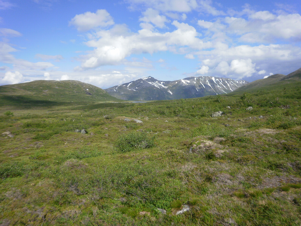 Ser bortover mot Heivatna. Blåfjellet til venstre. Fjella i bakgrunnen er Høgsvora og Næremstindane.