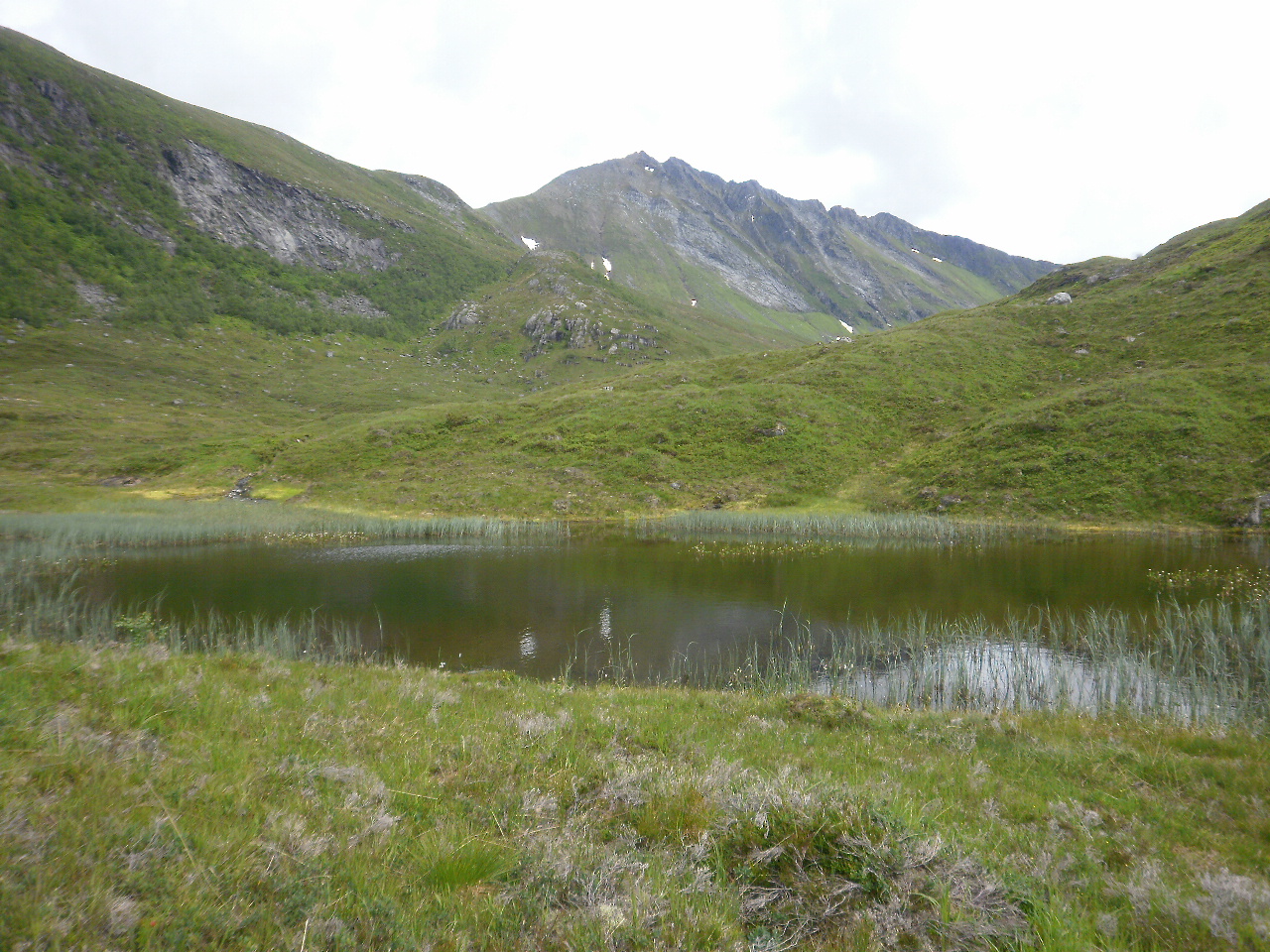 Tilbakeblikk på Middagshornet (i Barstadvik) frå Småvatna i Nordre Vartdal.