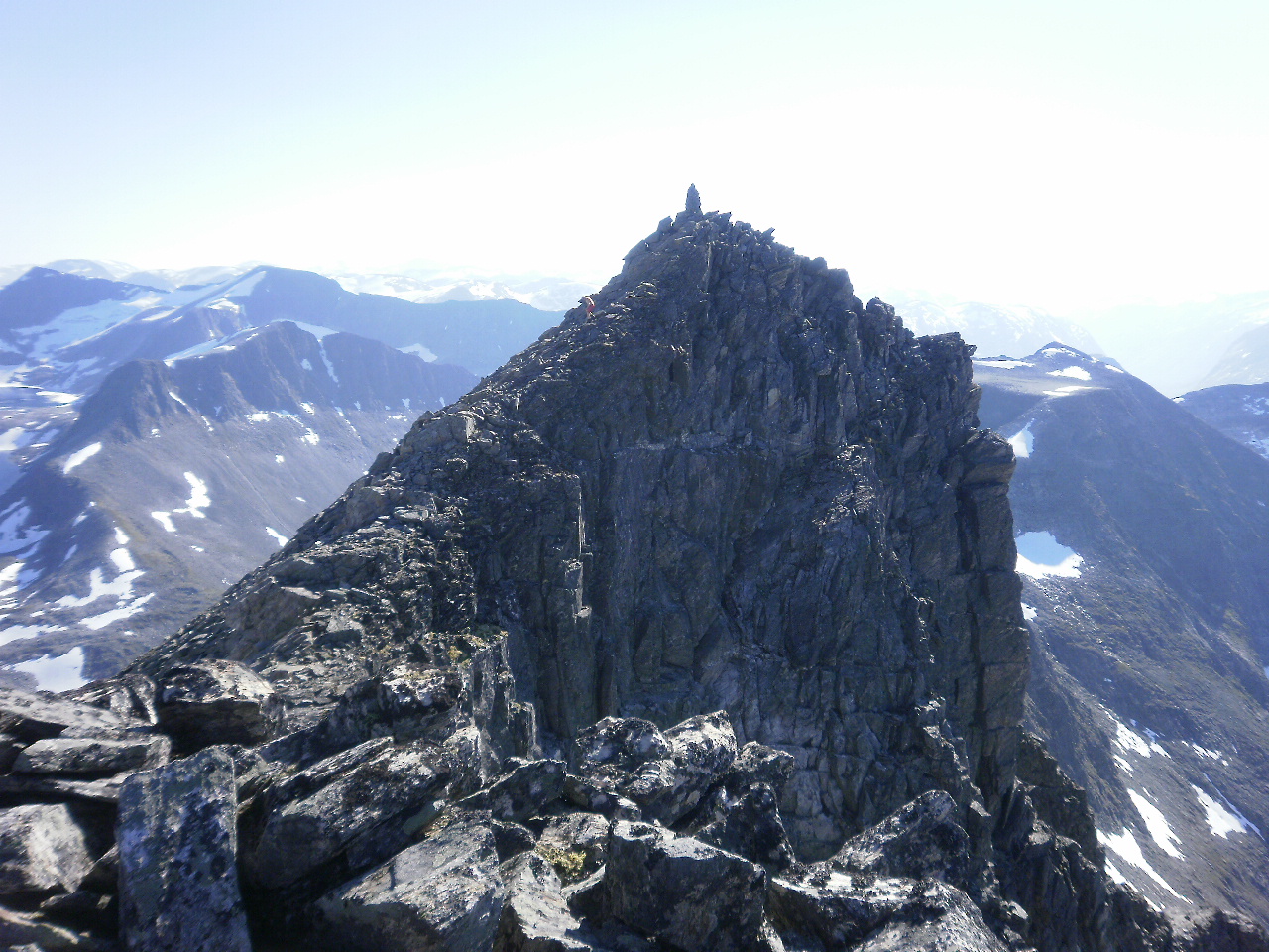 På sørenden av topplatået. Ser bort på ein liten topp som er luftig, men grei å nå på ein turr dag.