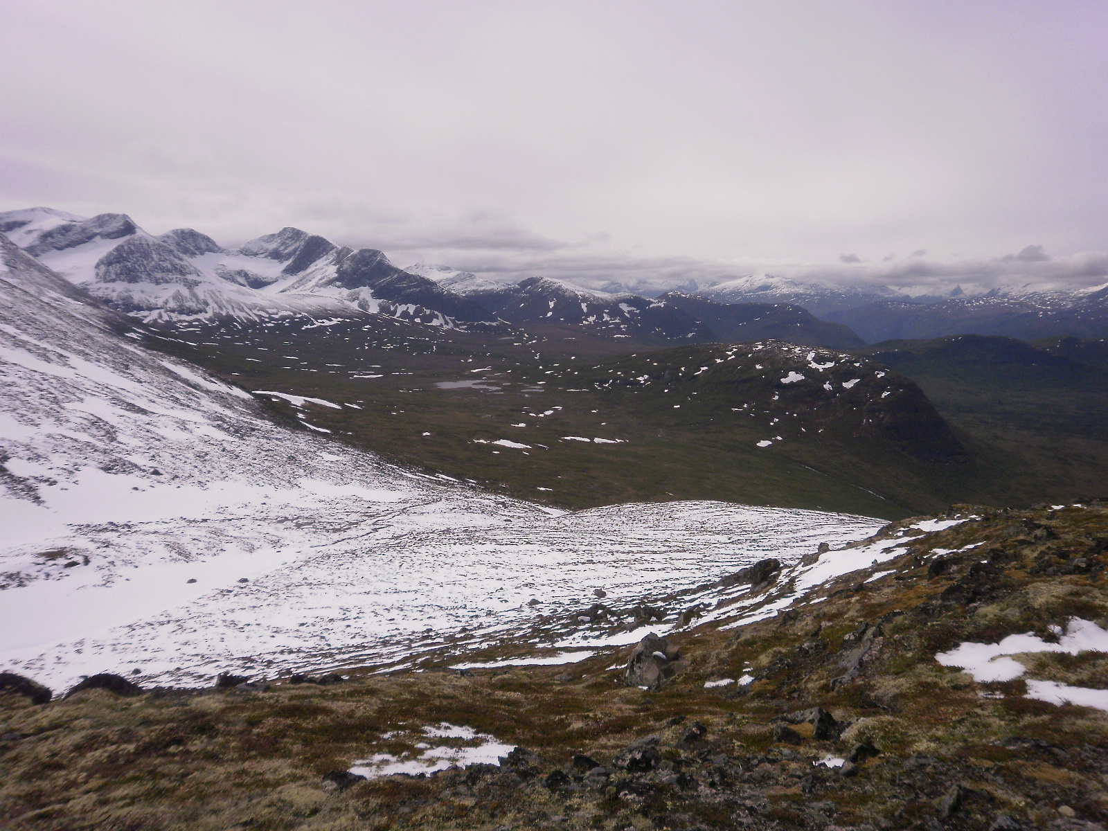 Ser mot sørvest. Fjella til venstre er m.a. Fremste og Heimste Skorkja.