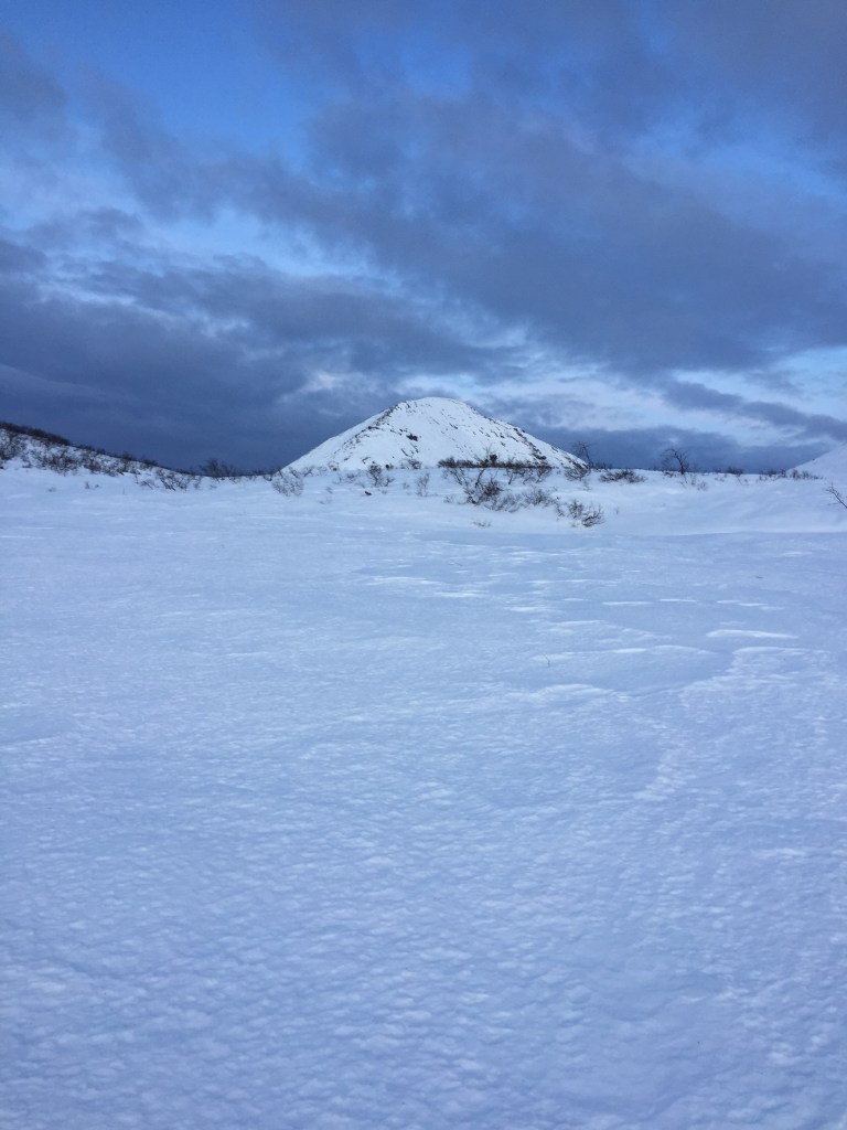 15. desember: Tid for å snu. Kvelden nærmar seg, og her oppe har snøen ei hard skorpe. Likare føre med mindre skorpe frå Grytalisetra til inn mot hit. Ser mot Kvitnykja.