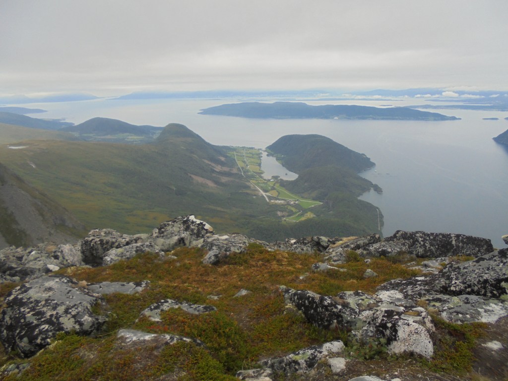 Ser mot nordvest med Vågen, Vågstranda og Sekken.