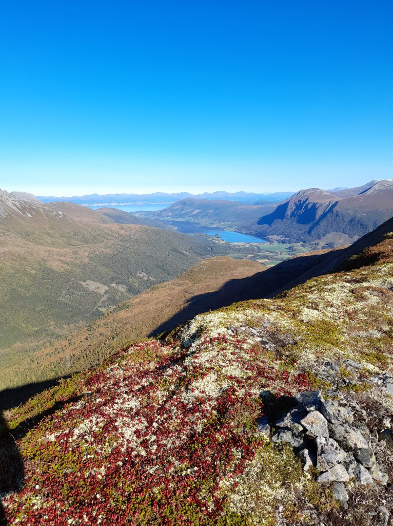 27. september: Oppe, og ser mot Tresfjorden. Vindstilt, og godt og mildt.