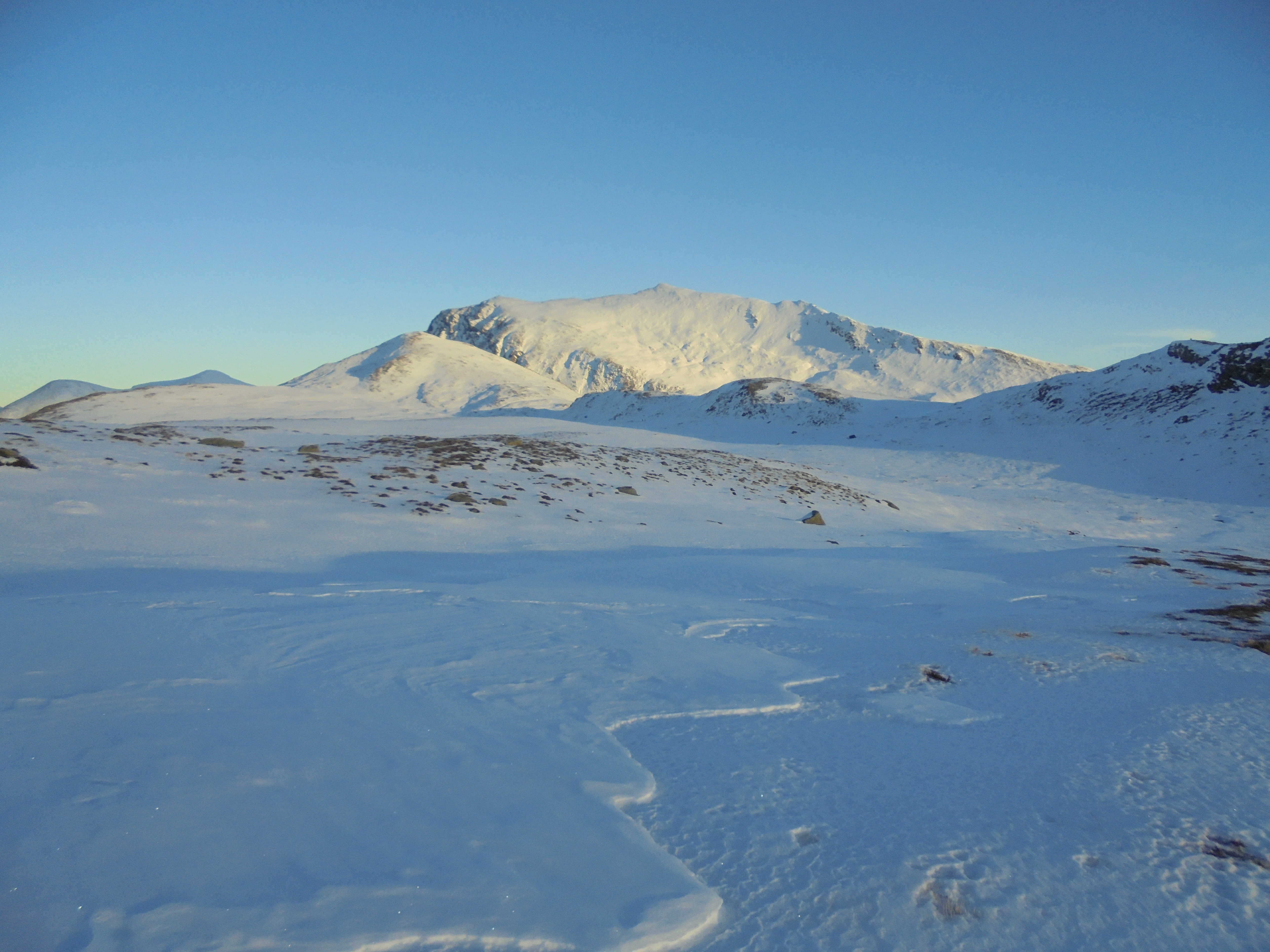 Komen nesten ut til varden. I øvre delen var skaren god å gå på. Måtte berre passe på å gå der det ikkje var for bratt. Ser mot Høgsvora, med Geitnibba nærare og lågare.