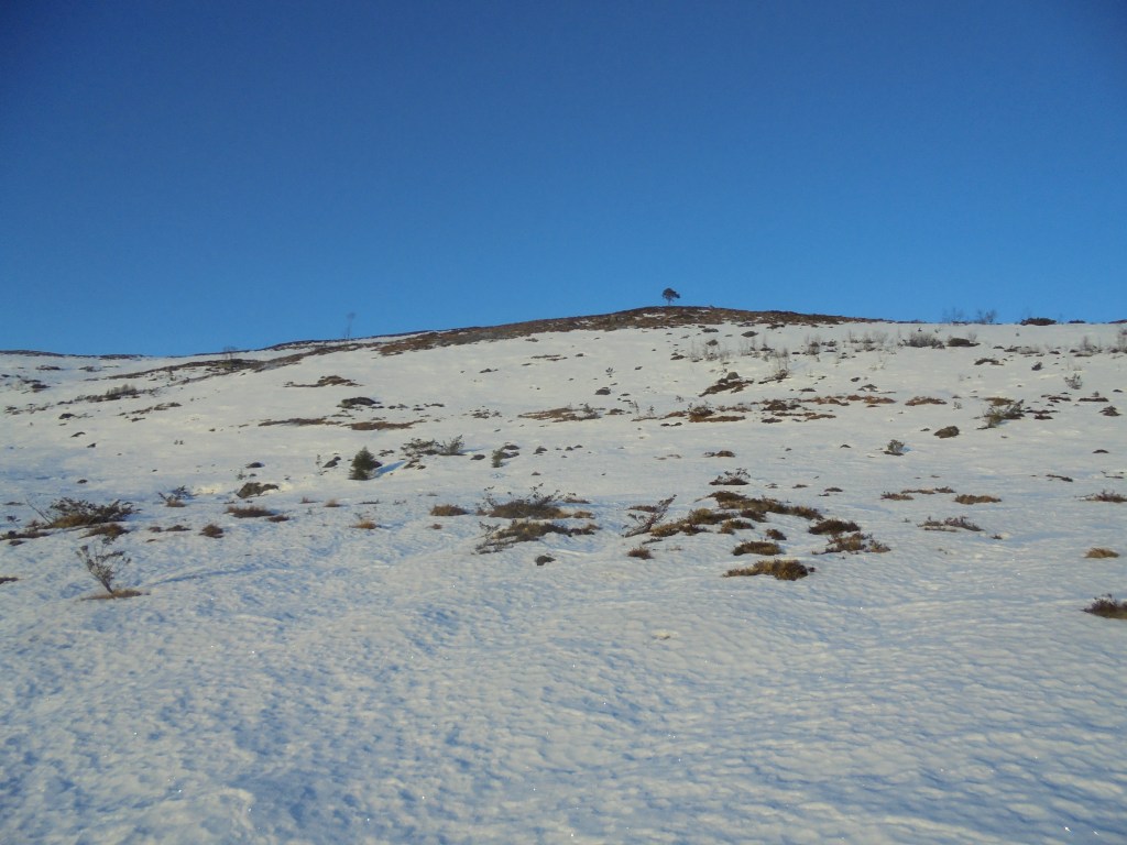 Tilbakeblikk oppover. Dette partiet var greit å gå på så lenge det ikkje var for bratt. Skaren bar godt utan å vere for glasert på overflata. Lengre nede var det ikkje fullt så godt å gå nedover.
