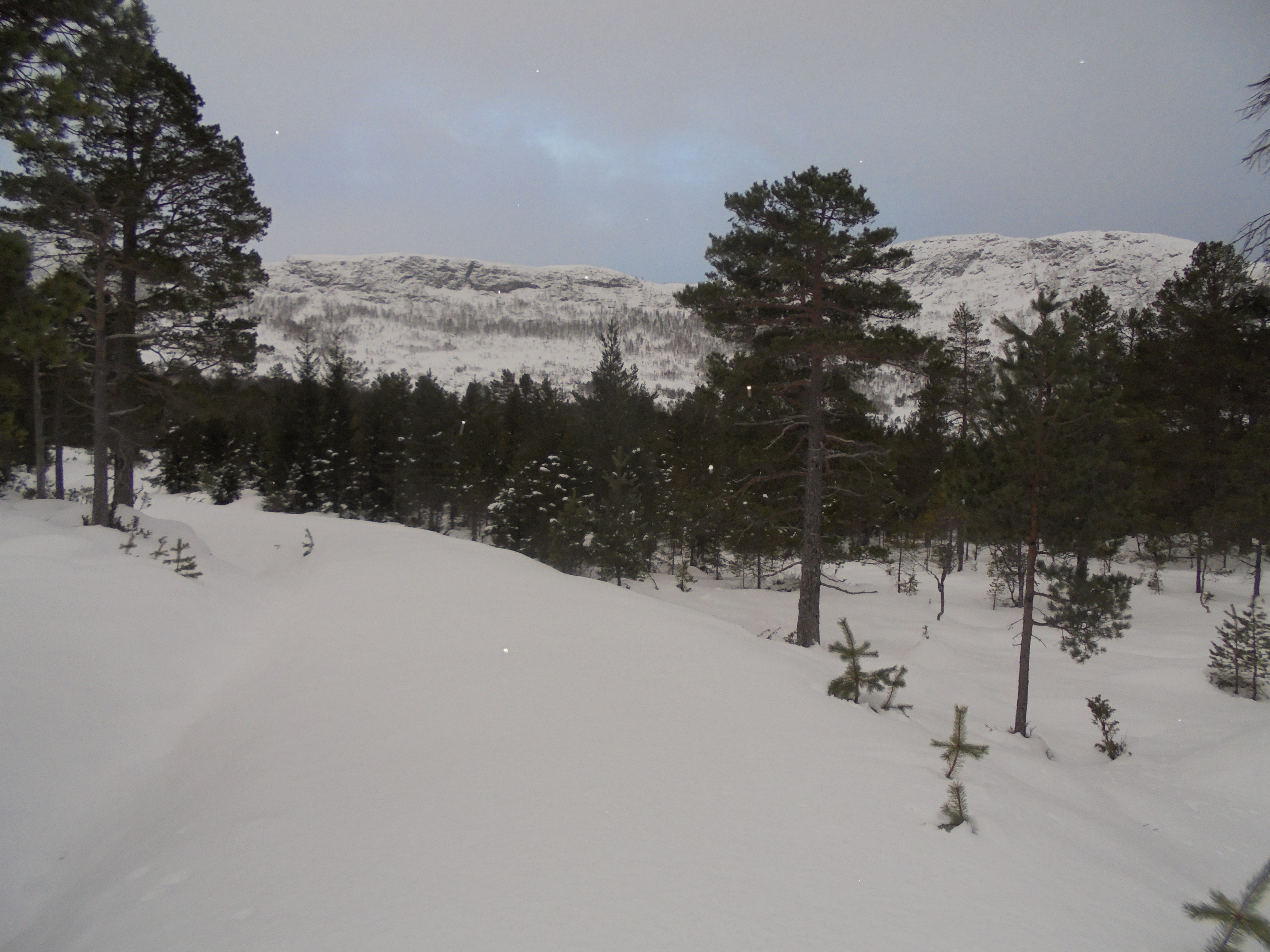 27. januar: Ut i laussnøen og tilbake. Tungt å gå på grunn av at nede i snøen var eit litt fastare lag som ga etter for trykk. Ser Bollen til høgre.