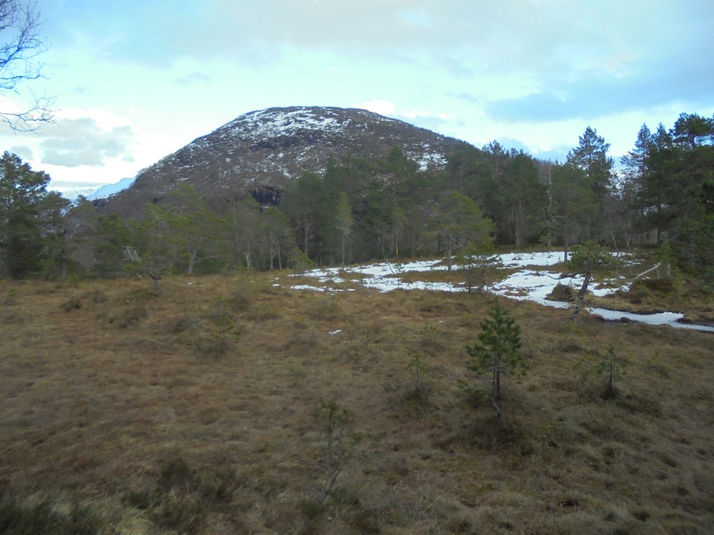 Kveldstur 27. mars: Ser mot Hallvardsfjellet. Mildt i lufta og turt i marka etter ein dag med opplett og noko sol.
