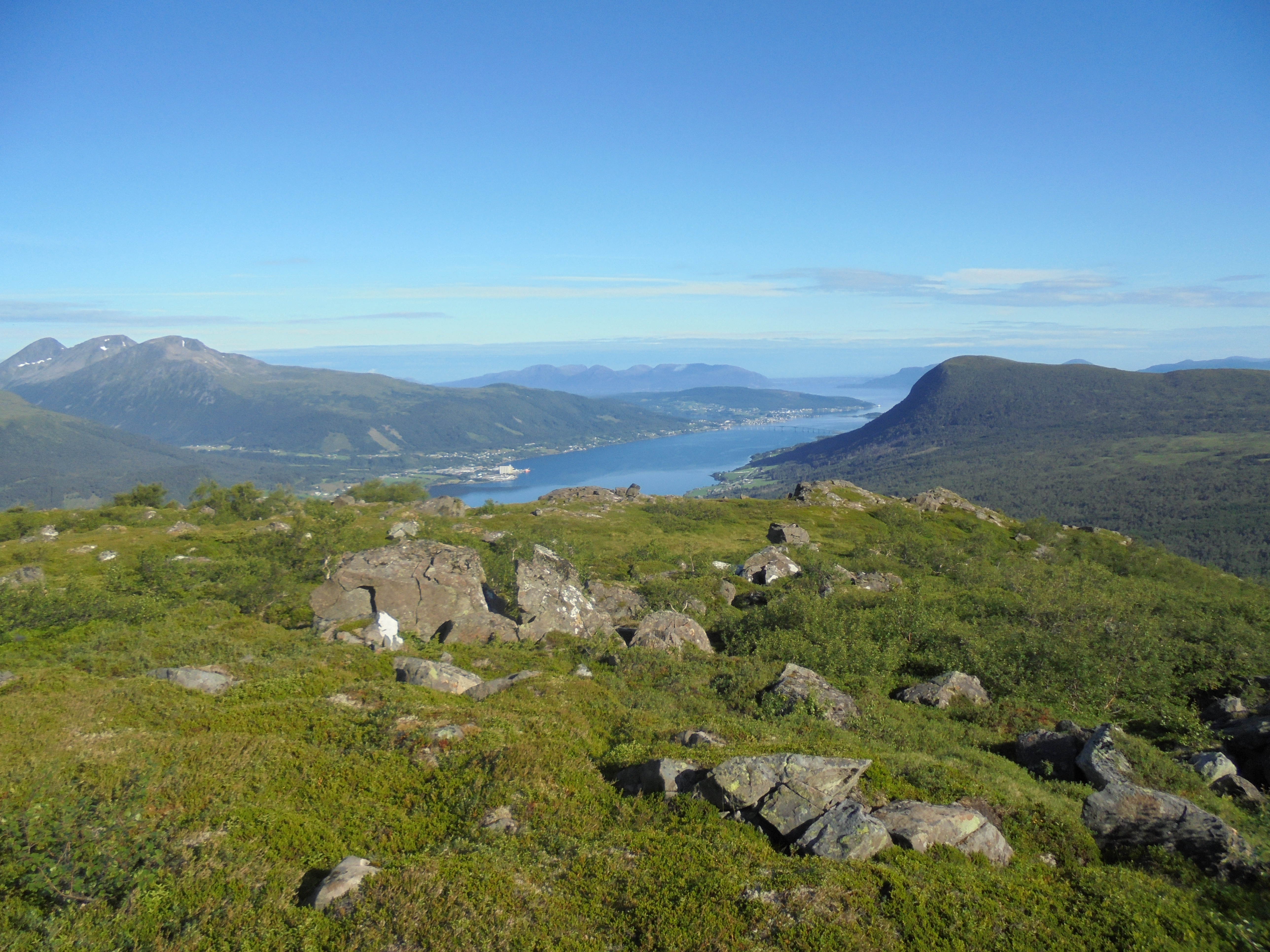 Tilbakelagt myrlendet og ei lita skogli og komen opp i ope terreng.
