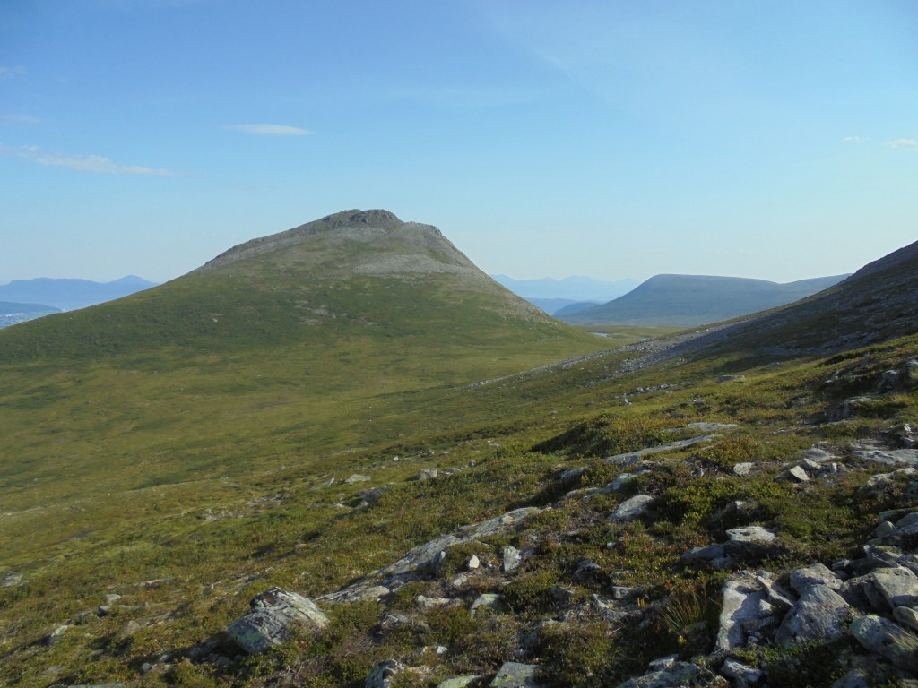 Ser mot Hoemstinden. Kom gjennom skaret til høgre i bildet.
