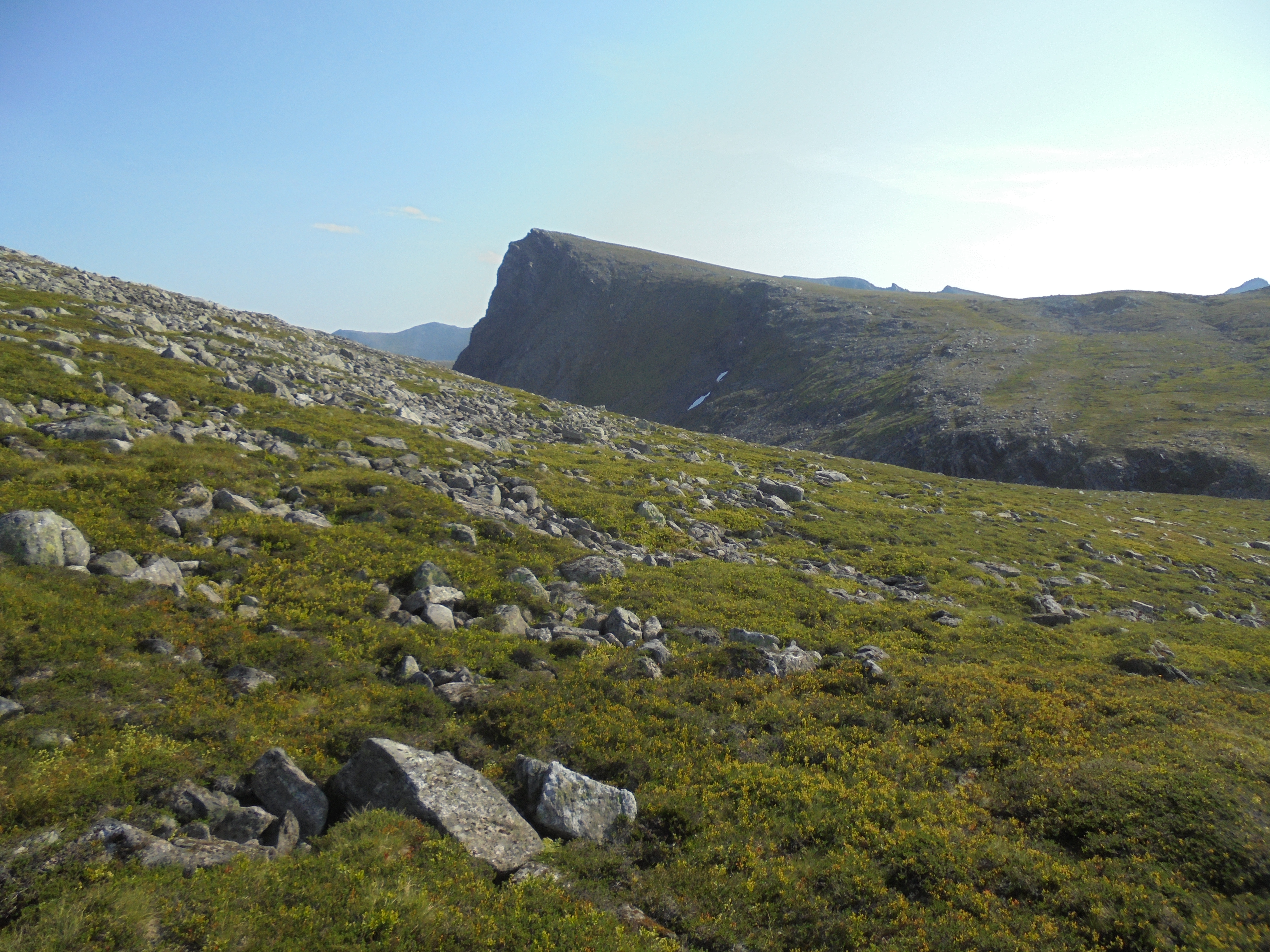 Ser mot Blåfjellet. Går mot høgre rundt skaret i bildet.