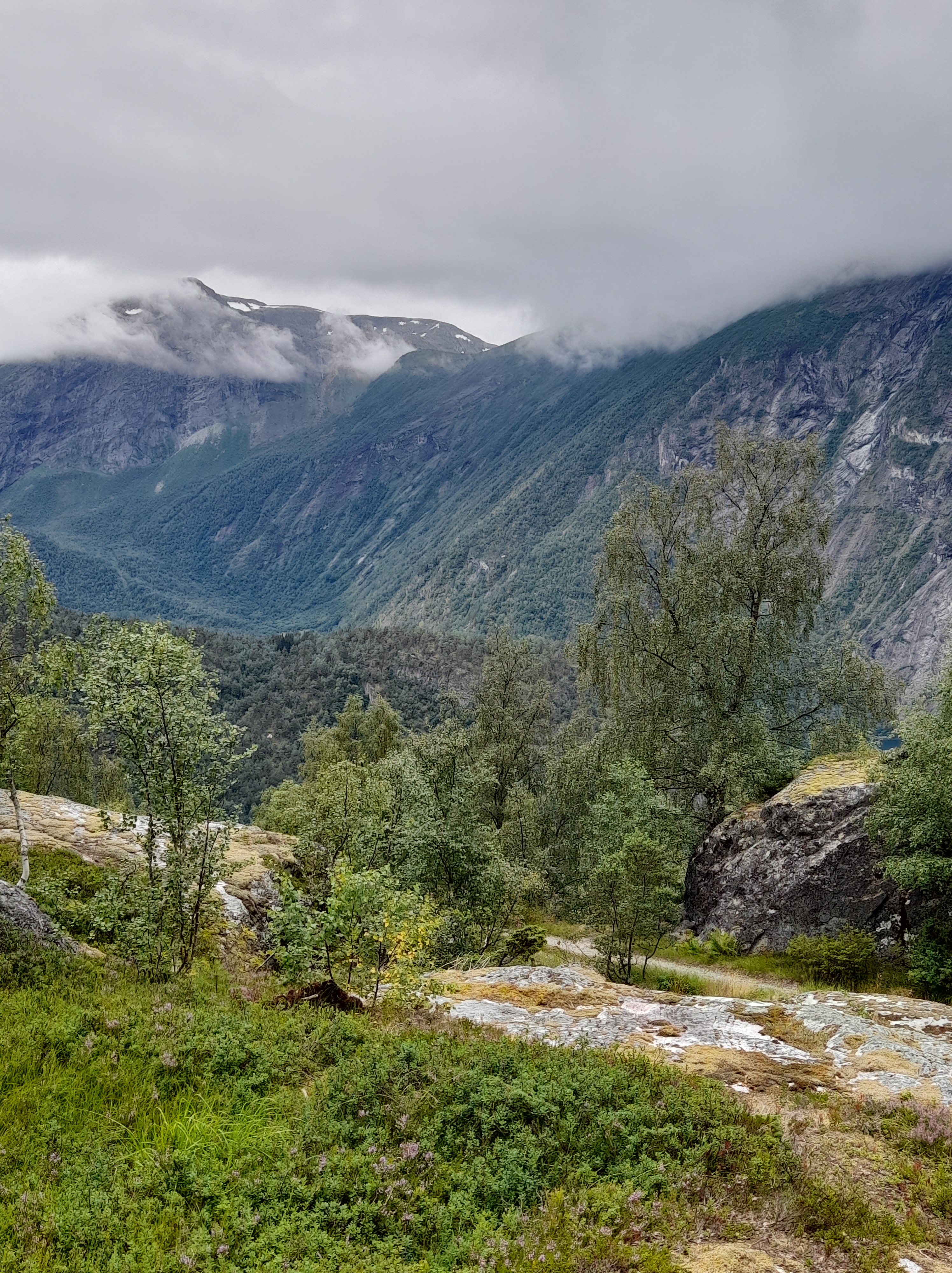 Førmiddagstur 31. juli: Komen opp på kanten og ser inn mot Kallskaret.