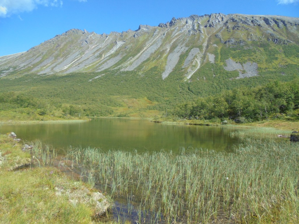 Midttjørna med Svartvasstinden bakom og Trolltinden til venstre.