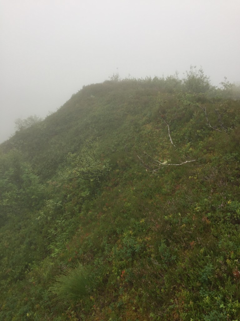 16. august tidleg kveld: Har plukka blåbær frå setra og framover, og her oppe på 400 meter er det lite å finne.