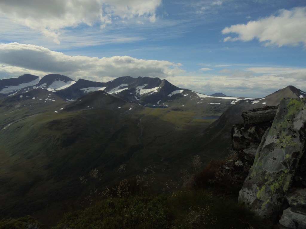 Storbua, Sandfjellet og Øspetinden. Kvitnykja stikk sovidt opp.