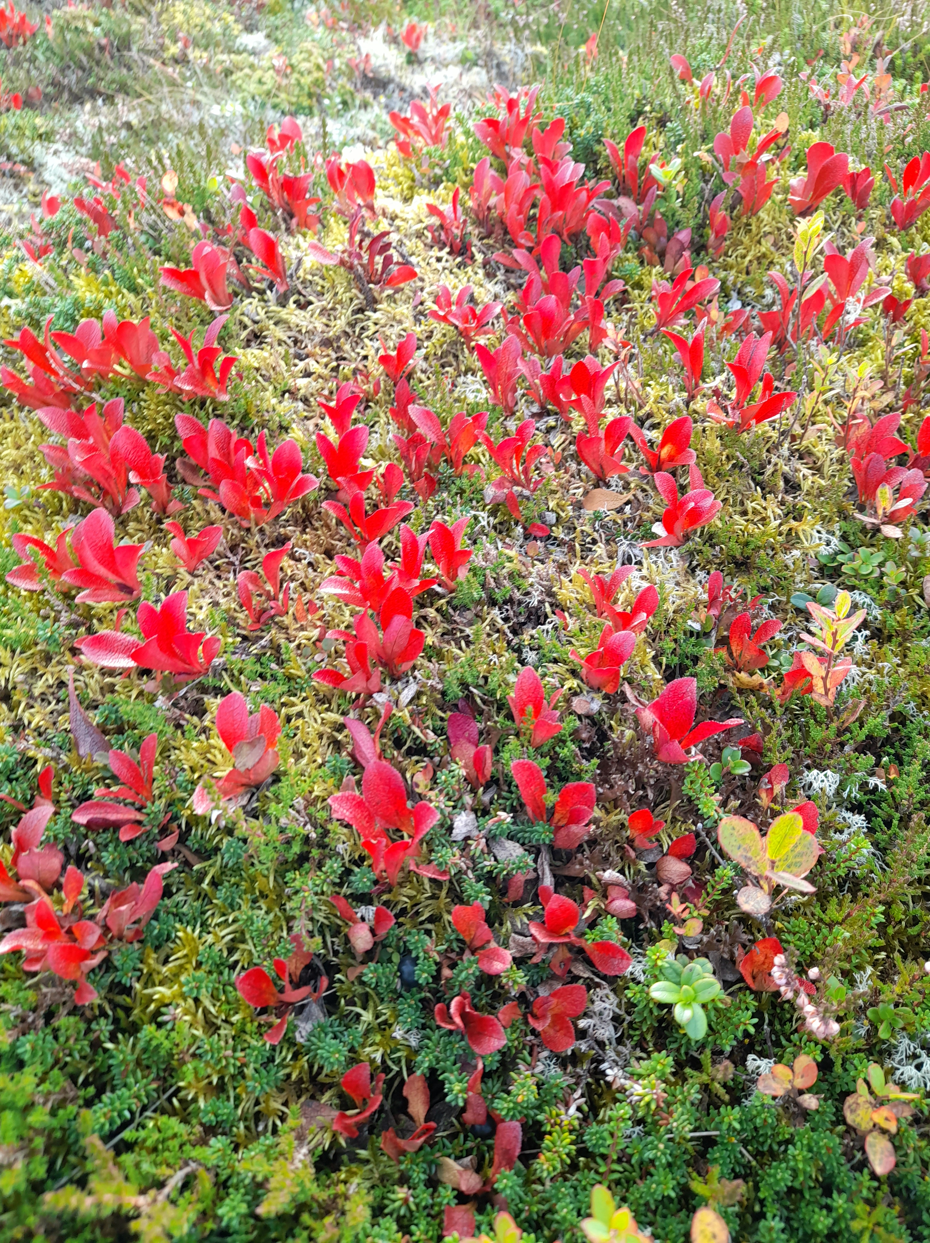 Rypebær på ein forblesen fjellrygg.
