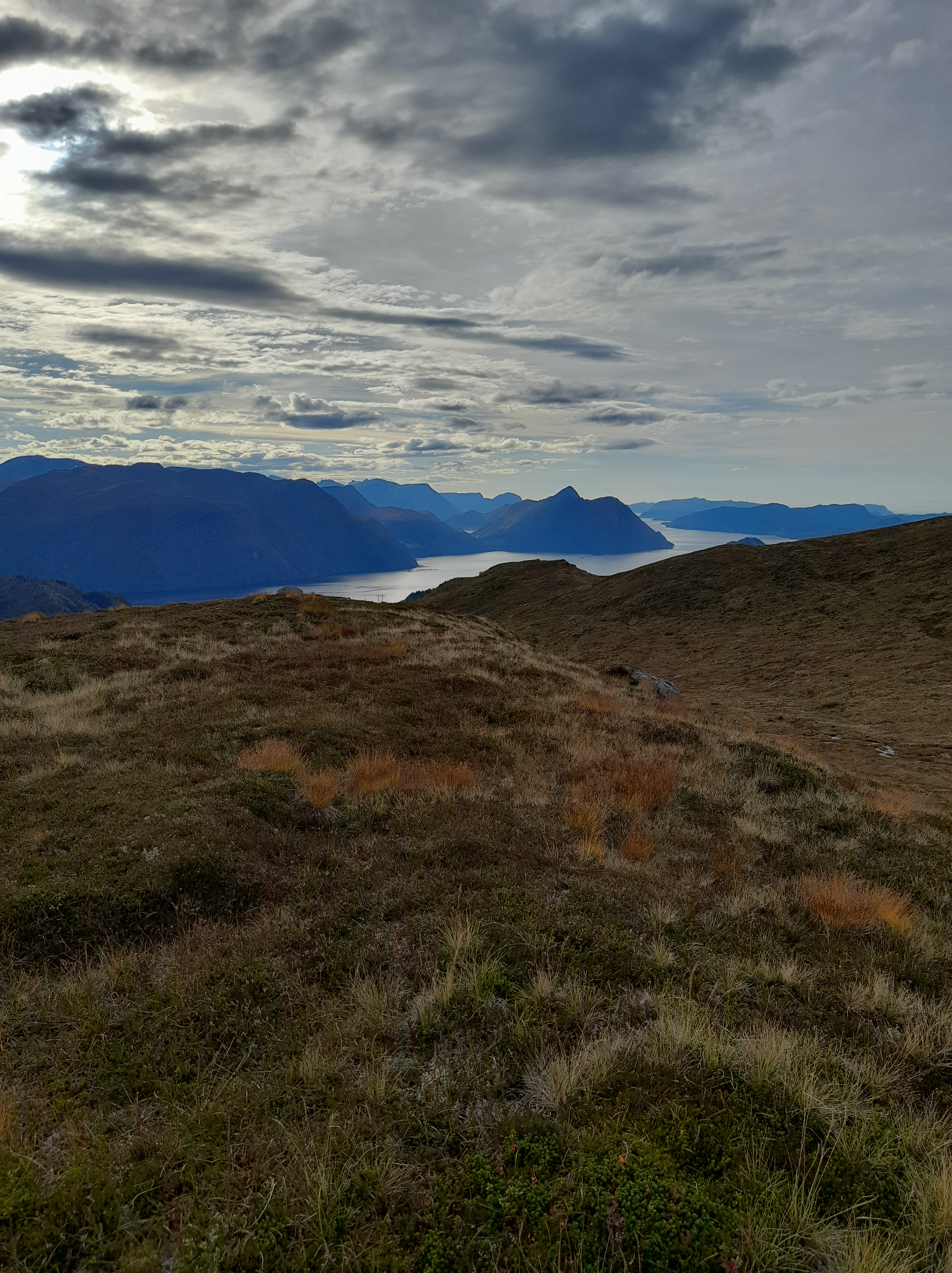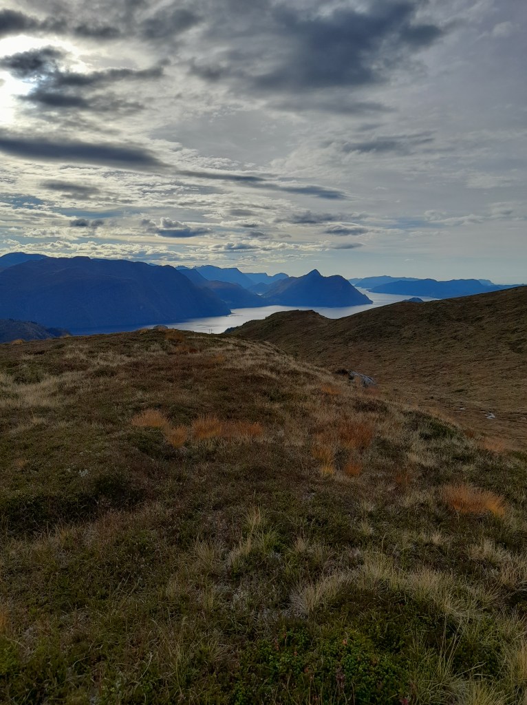Ser mot fjorden med Grønnyken hitom og Sandvikfjellet bortom og litt til høgre.