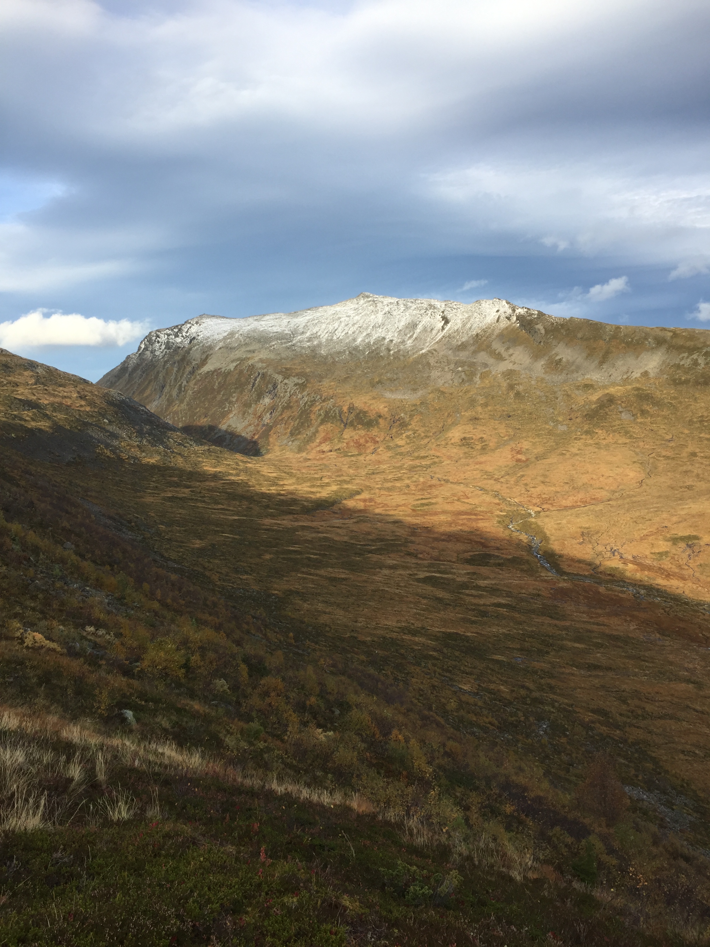 9. oktober ettermiddag: Oppe i sida av Sætrefjellet for å jage ned ein sau med eit lam. Frisk bris frå sørvest i terrenget her. Ser bort i Høgsvora.