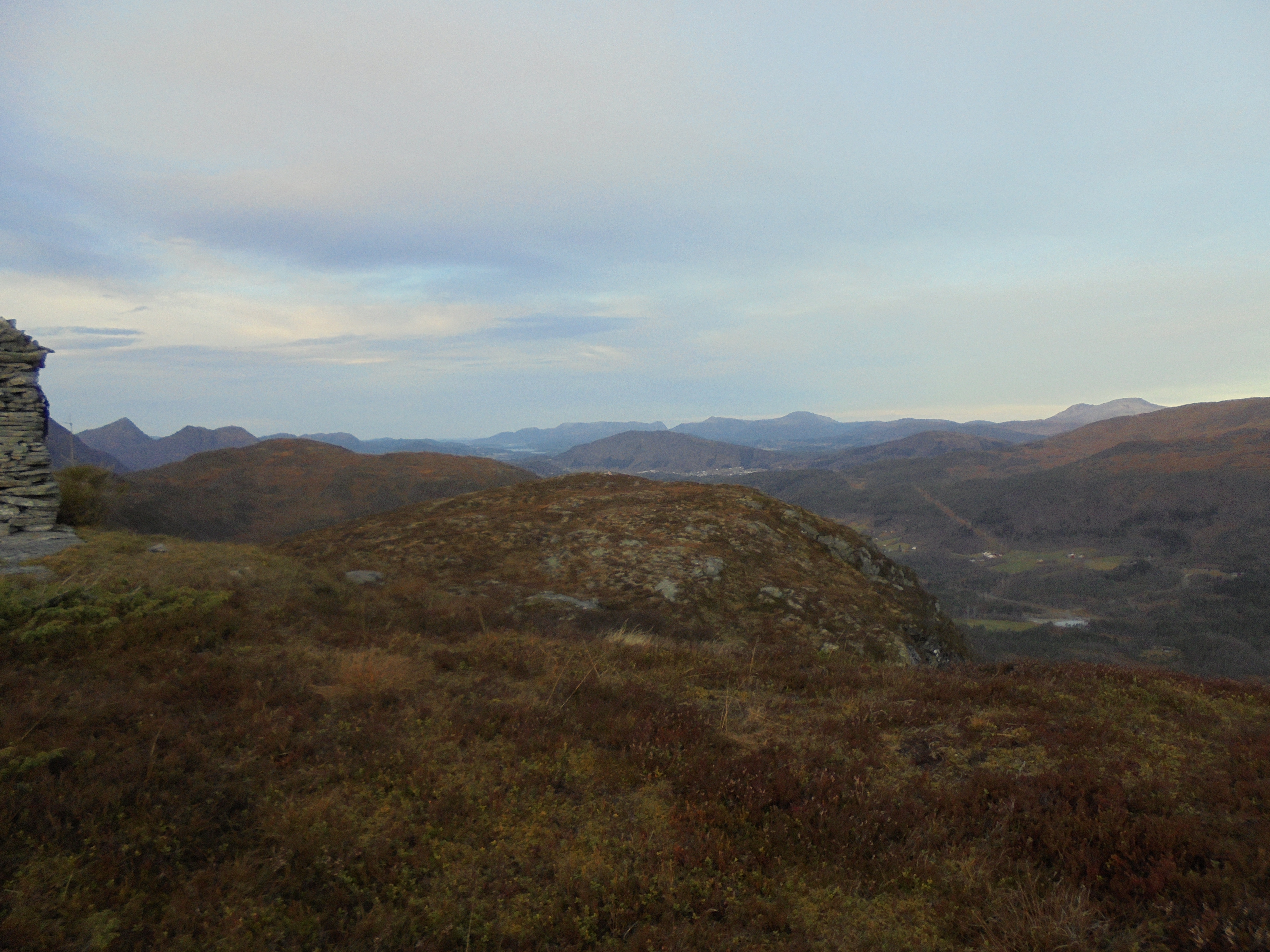 - november: Komen opp og ser mot vest. Den vesle vassflata til høgre er kraftverksdammen. Oppe til høgre ligg Blåskjerdingen i bakgrunnen. Svak vind frå sør-søraust.