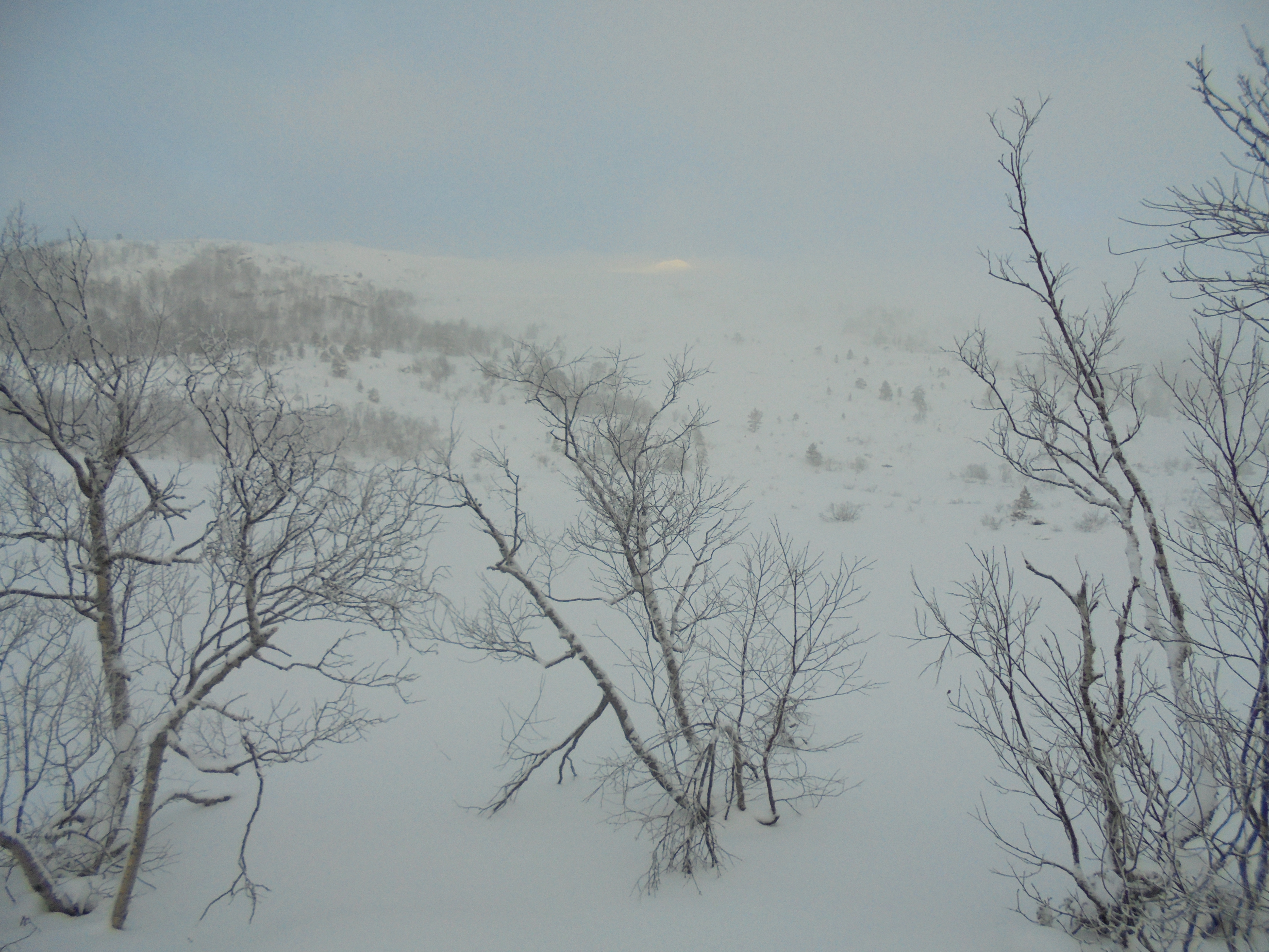 - februar: Stilt og sovidt kuldegrader. I dag var det skodde, mest litt aust om her. Ser mot nord. Sola skin på Høgsvora, og det viser litt oppe i bildet.