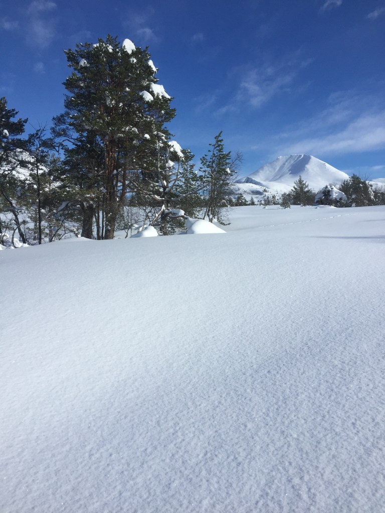 12. mars 2023: Gjekk ein kort tur opp i skogen. Snødjupna er meir enn ein og ein kvart meter. Ein vindtrekk i lufta, fint å sette seg i solskinet. Ser Kvitnykja til høgre.