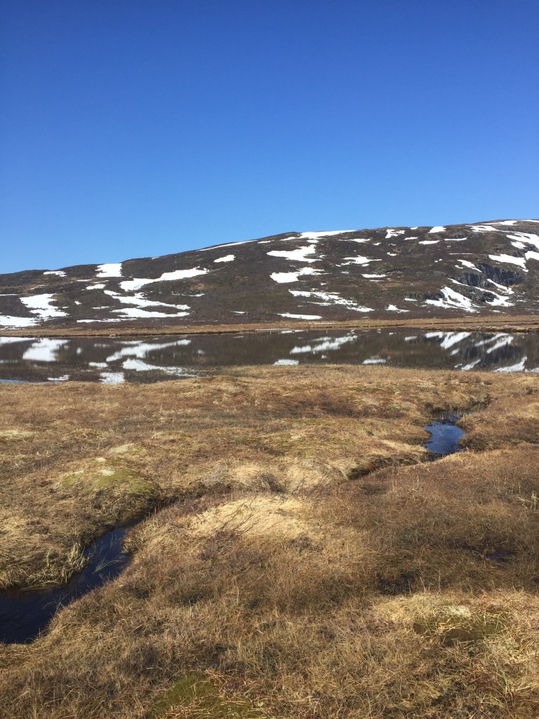 Ved Heivatna. Blåfjellet opp i høgre bildekant.